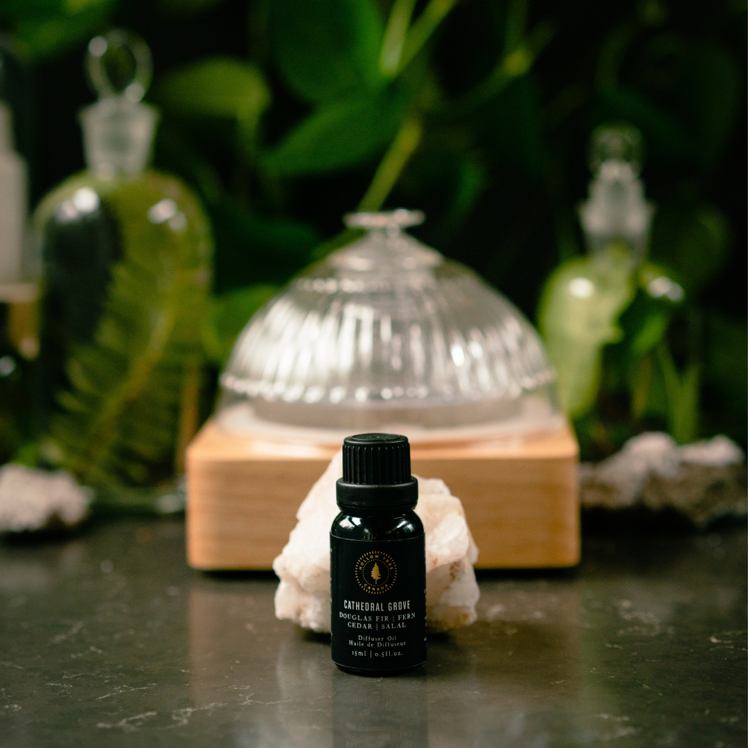 The oil blends the rich scents of Douglas Fir, Fern, Cedar, and Salal, evoking the majestic beauty of Cathedral Grove, where Douglas fir giants, some as old as 800 years and up to 29 feet in diameter, stand as silent sentinels of biodiversity. Each drop of our Cathedral Grove diffuser oil is a homage to these towering pillars, capturing the ethereal spirit of this enchanting forest. Allow the subtle yet captivating fragrance to fill your home, creating an inspiring and serene environment that reflects the pristine and timeless beauty of beautiful British Columbia.