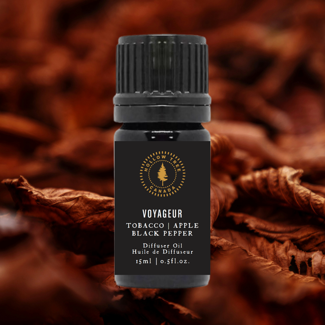 Transform your space into a historical tapestry with our Voyageur Scented Diffuser Oil, inspired by the same intrepid spirit as our Voyageur Candle. This oil captures the bold and adventurous essence of the French Canadian voyageurs. It blends the deep, warm notes of tobacco, the refreshing sweetness of apple, and a zesty kick of black pepper.
