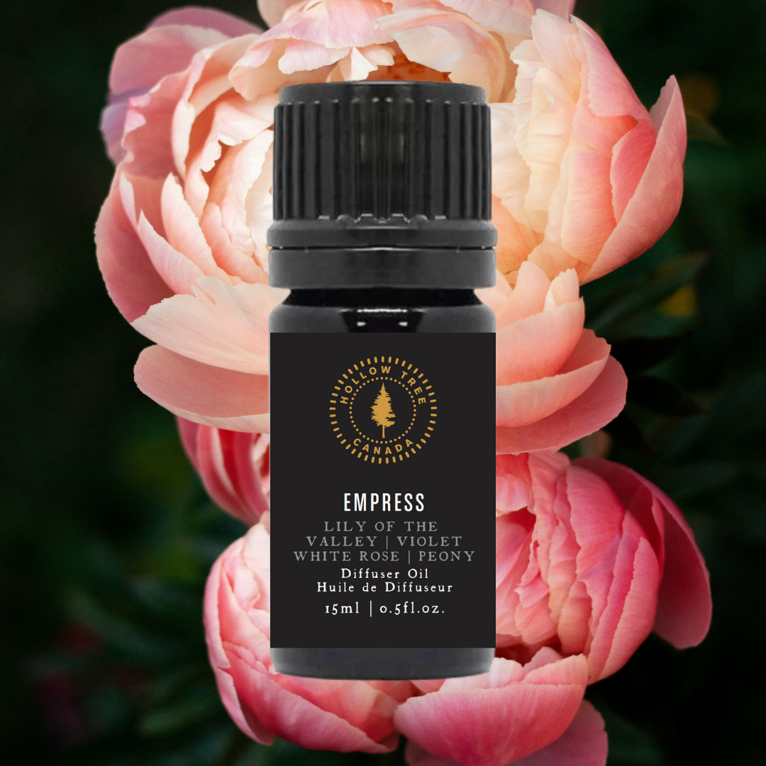 Each drop releases a subtle yet captivating fragrance, creating an ambiance of elegance and tranquility in your living space. Ideal for use in any diffuser, this oil is a perfect way to continuously fill your surroundings with the sophisticated and soothing aroma of the Empress blend, inviting a sense of peace and floral grace into your daily life.