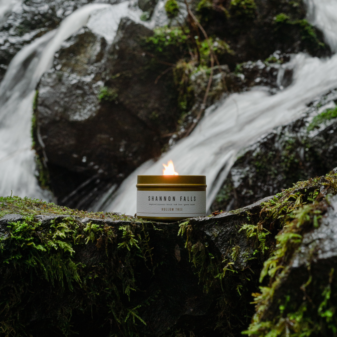 Available in two sizes, our Signature Candle offers a generous 60-hour burn time in a 9 oz vessel, perfect for those extended moments of tranquility. For the wanderlust seekers, our Travel Candle presents a compact 4 oz option, ensuring up to 25 hours of this harmonious blend accompanies you wherever you roam. Light our Shannon Falls Candle and let its gentle, soothing aroma guide you along the cascading beauty of one of BC's most majestic waterfalls.